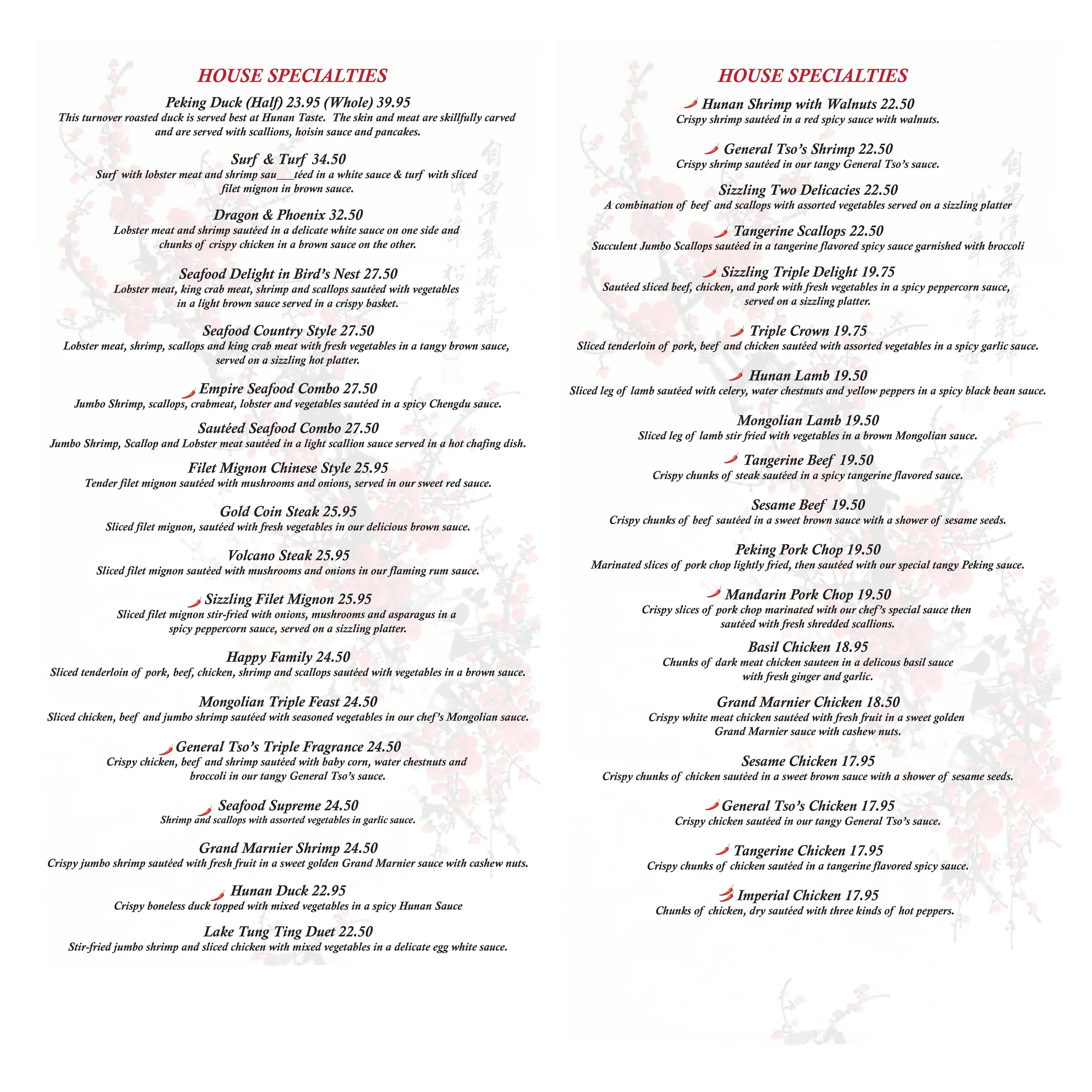 Prepared with sliced chicken pork and baby shrimp snow peas black mushrooms red peppers in a brown sauce served on a sizzling pan. Hunan Taste Denville Hunan Taste often appears at the top of most lists of the states best Chinese restaurants. At Hunan Taste Chinese Restaurant in Denville guests can sample the Chinese menu and choose from numerous highly-rated options.